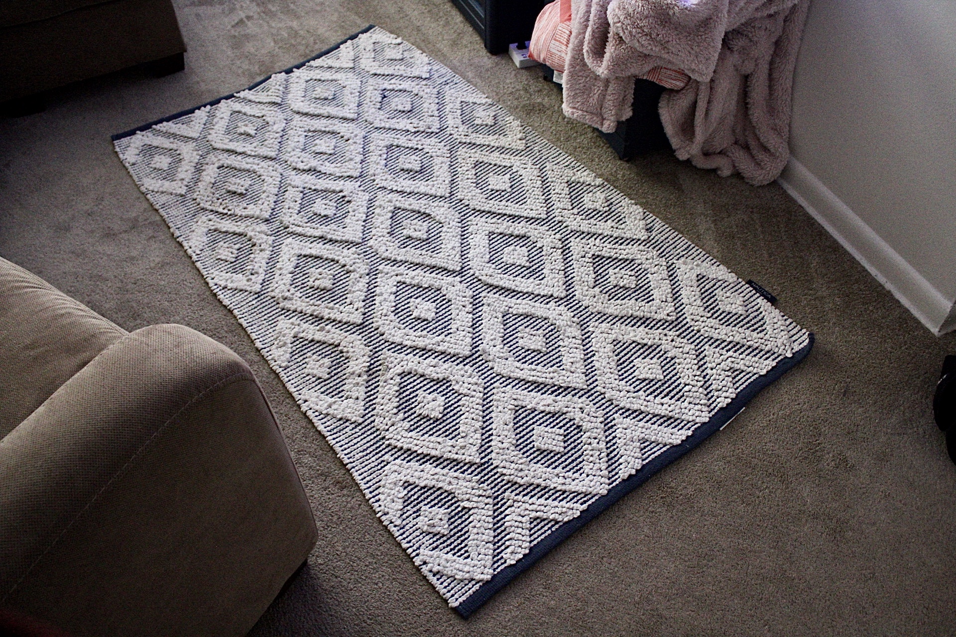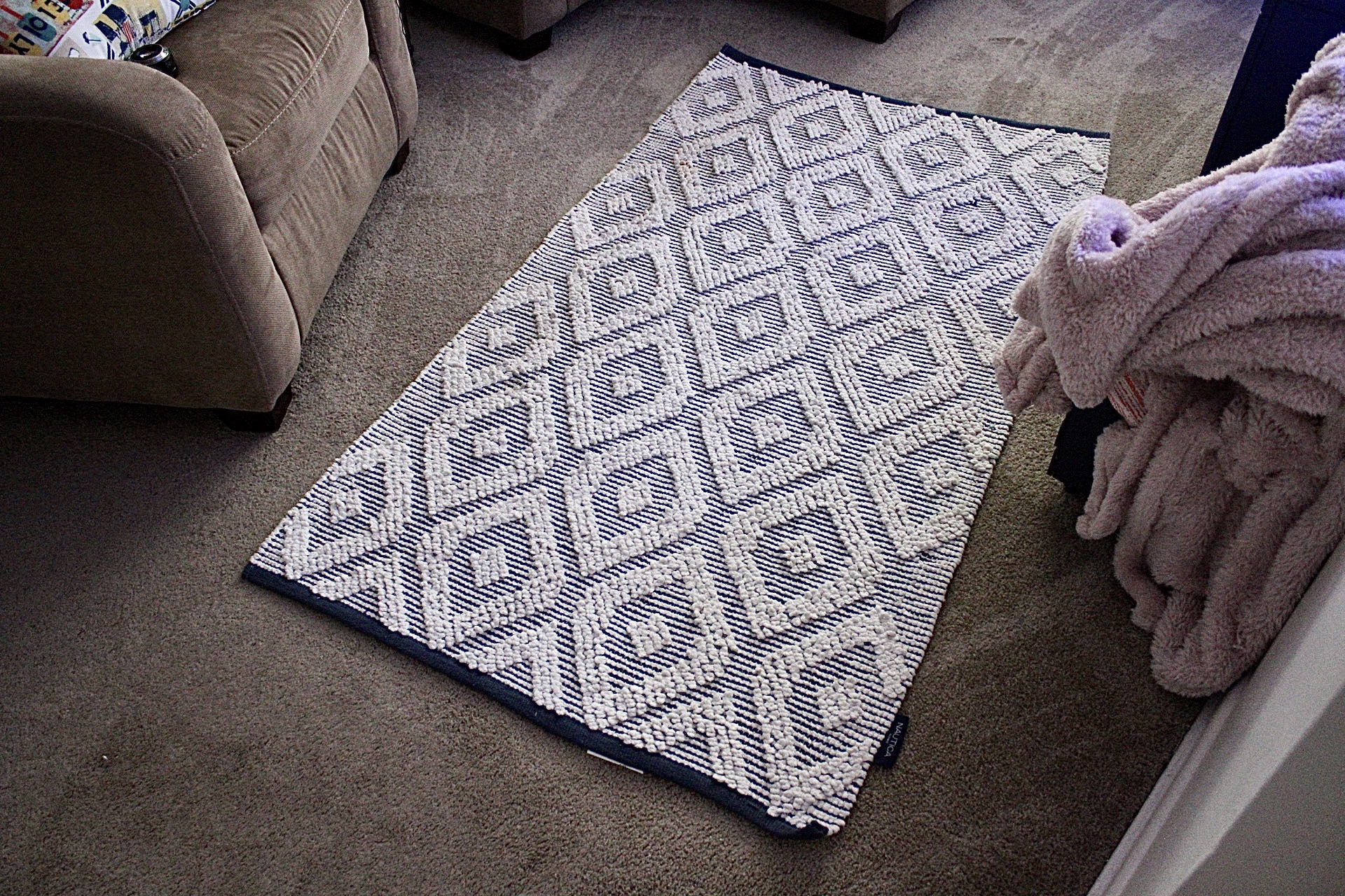 Side note: At first we planned to throw the rug in the washer, but I read the care instructions and discovered that we are supposed to get it professionally cleaned. Knowing myself, I knew I would never pay $$ to get a small rug cleaned, so I was going to figure it out myself. I got this, challenge accepted!