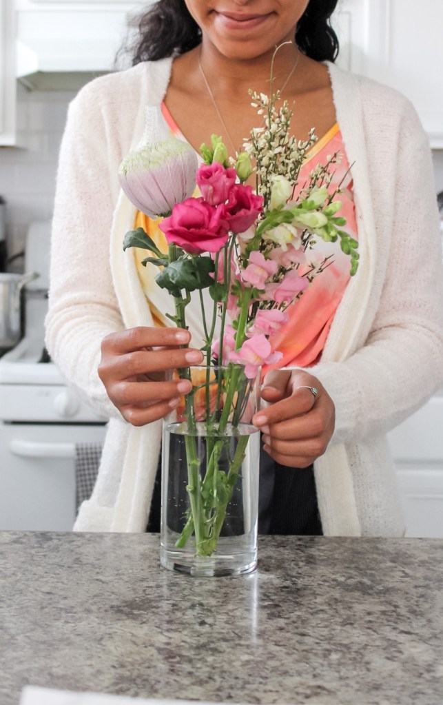 Picking up fresh flowers during the warmer months is something I look forward to each and every year. By no means am I a professional florist, but you don’t need to be! Arranging my own flowers brings me so much joy so I tend to have a little more fun with it, and would prefer to ponder over tons of stems versus buying pre-picked floral arrangements. This week, I’m sharing my first floral arrangement of the year and a few tips.