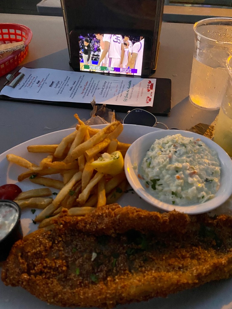 We ate dinner on the beach at Crabby Shack and watched the sunset. We also set up the phone and watched the NCAA tournament! The food was fresh and we had great service, but I wouldn’t expect anything over the top when going here. I would go back again, though!