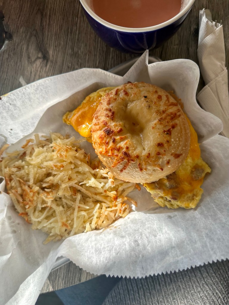 We ate breakfast at 45th Parallel Café before we started our festivities for the day (lots of tastings). I ordered the breakfast sandwich on a parmesan bagel with a cherry chai tea. This café is also connected to Candy World, which has treats and treats for all!