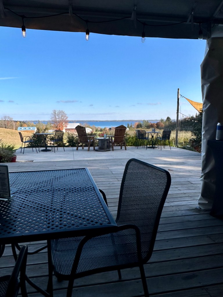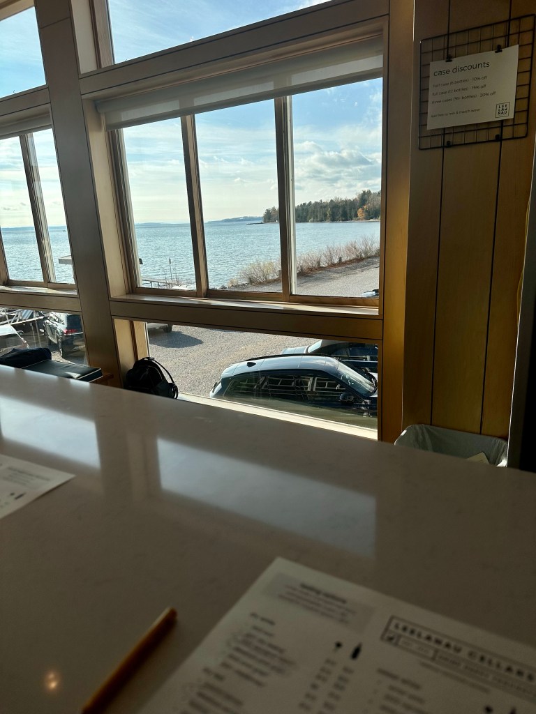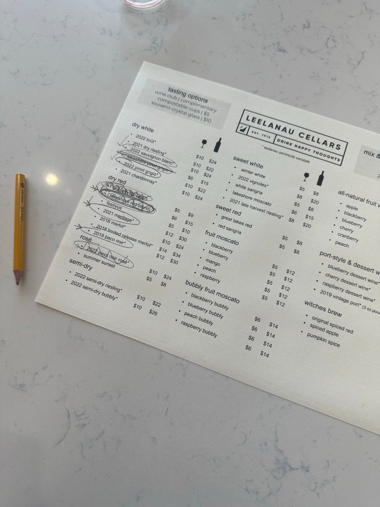 Our first stop was at Leelanau Cellars and it was probably one of my favorite spots this weekend. There are plenty of dry and sweet wine options, but I stuck to my dry whites and reds, while my friends tried sweets. I enjoyed learning about each wine that I tried, and the incredible lake views. They also had a heated tent outside for more people to gather and watch sports/TV. My favorite wine was the 2021 Meritage!