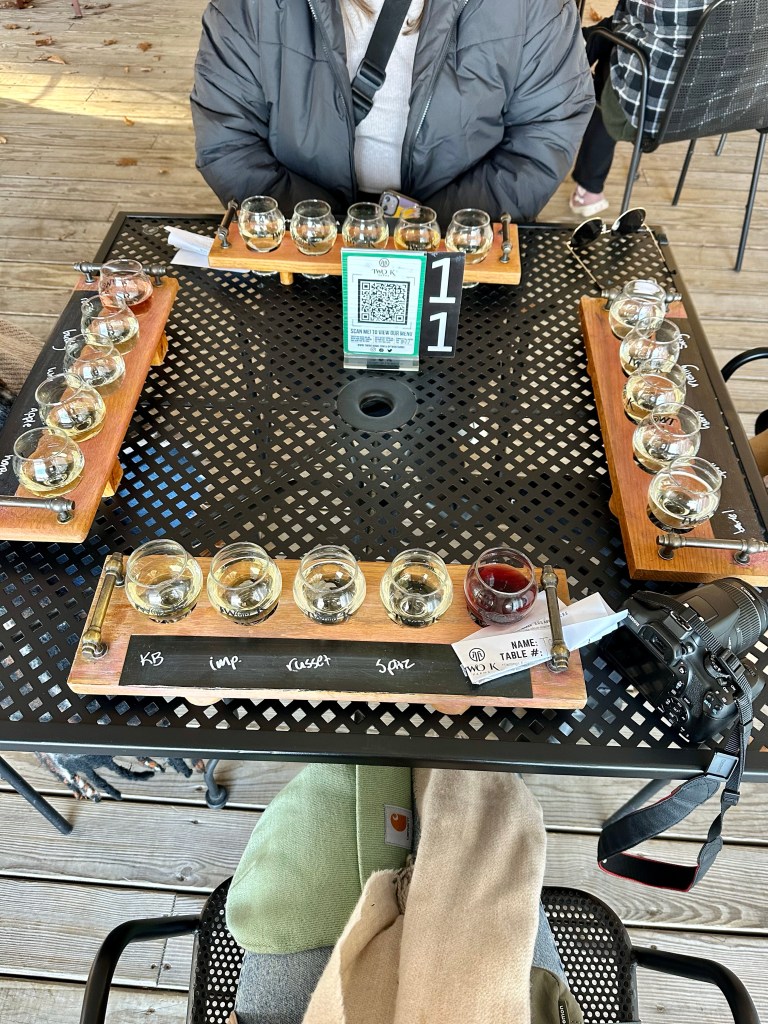 One of our final stops was at 2K Farms, which had incredible lake views and scenery. The views here were one of my favorites from the trip. There are plenty of cider options and a few wines. We all decided on flights and I ended up trying 4 of their ciders and a taste of pinot noir.