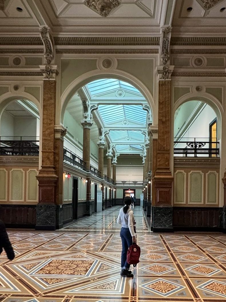 Before diving into the art, we stopped by the Courtyard Cafe for a quick bite and a much-needed caffeine fix. We shared a ham and cheese croissant and a latte. We sat in the atrium for a bit, enjoying the people watching and taking in the beautiful architecture of the building.